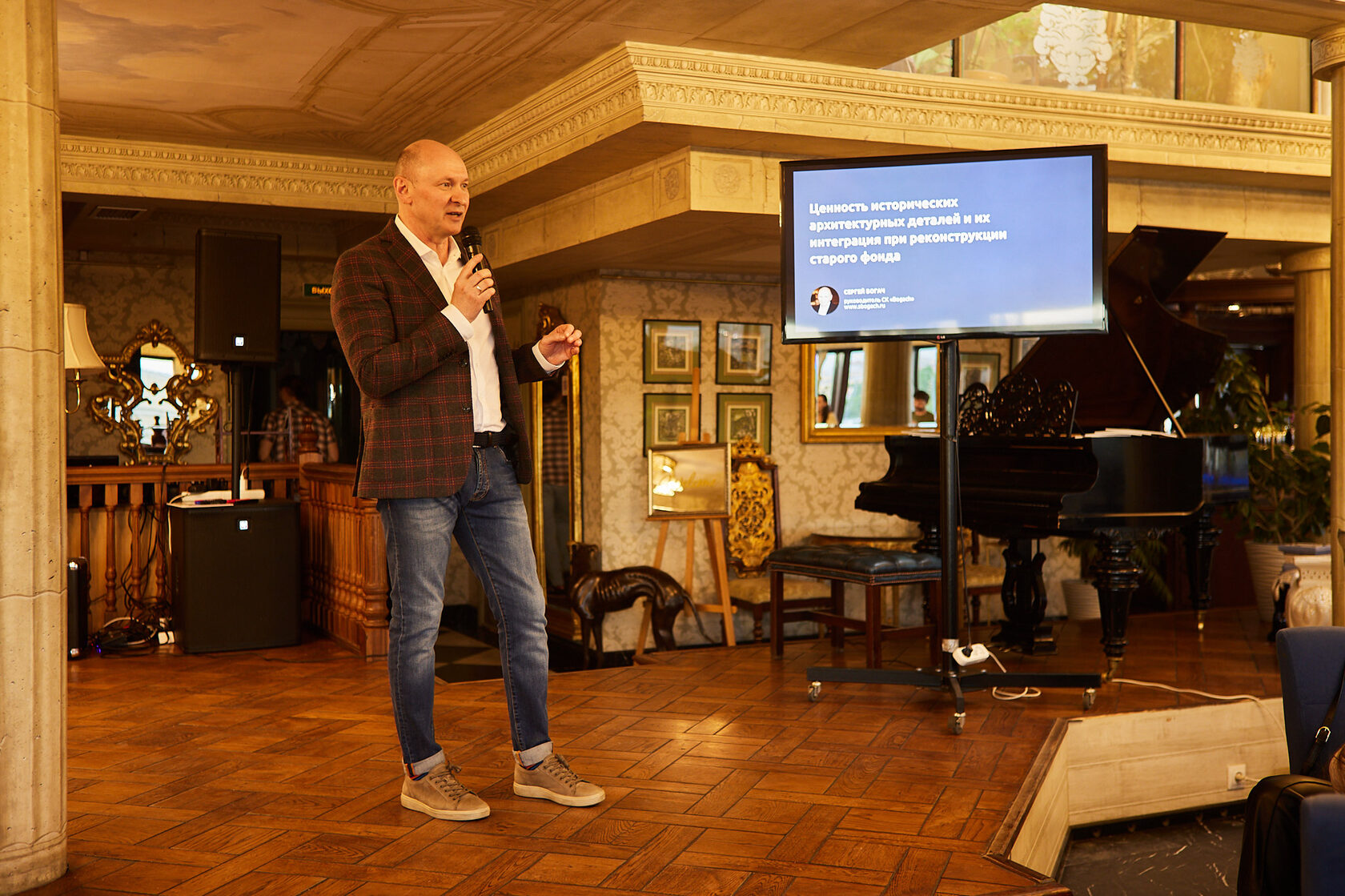 Сергей Богач — наш партнер и специалист по реставрации лепнины, каминов, художественной ковки, деревянных окон и дверей — основываясь на своем многолетнем опыте в реконструкции объектов старого фонда, рассказывал о ценности исторических архитектурных деталей, о необходимости их сохранения, а также о возможностях компании в реставрации и воссоздании деталей объектов старого фонда.